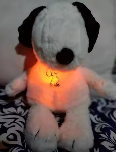 Excelente peluche se le recomiendo comprar es muy suave y si cumple con las condiciones que es son una luz amarilla y tiene sonido de dormir y también se le puede quitar el sonido de dormir y también se le puede quitar la luz es muy bonito el peluche me encanta si llega el día que